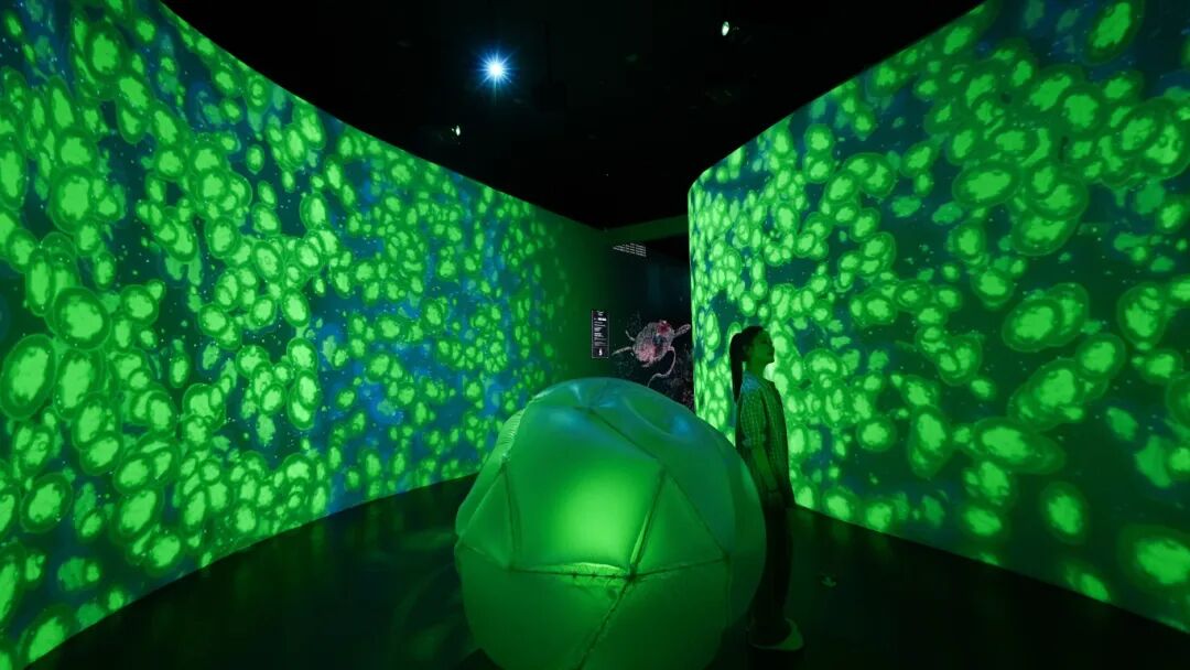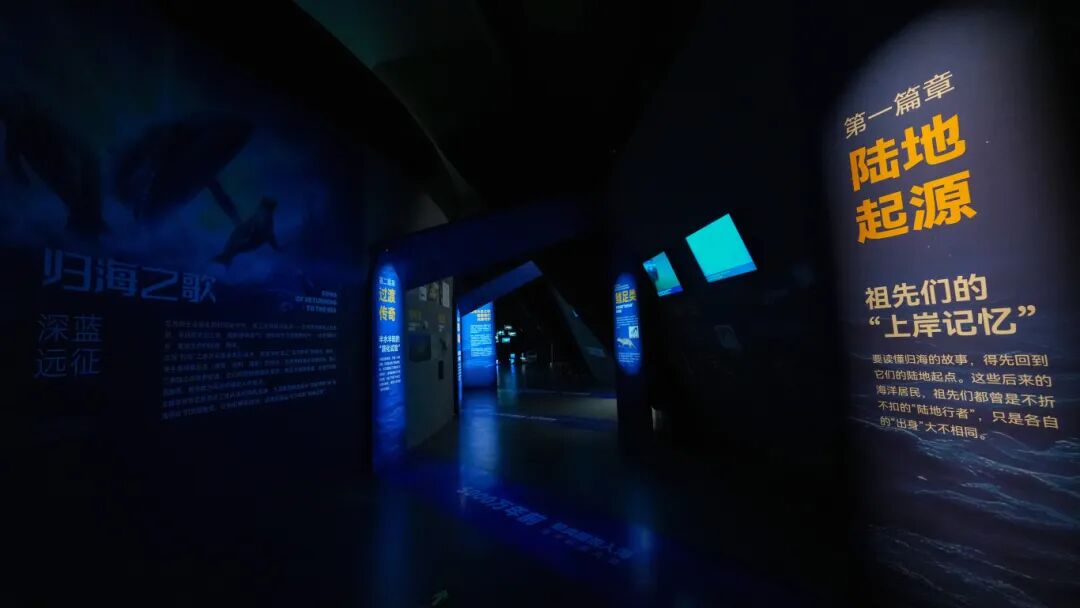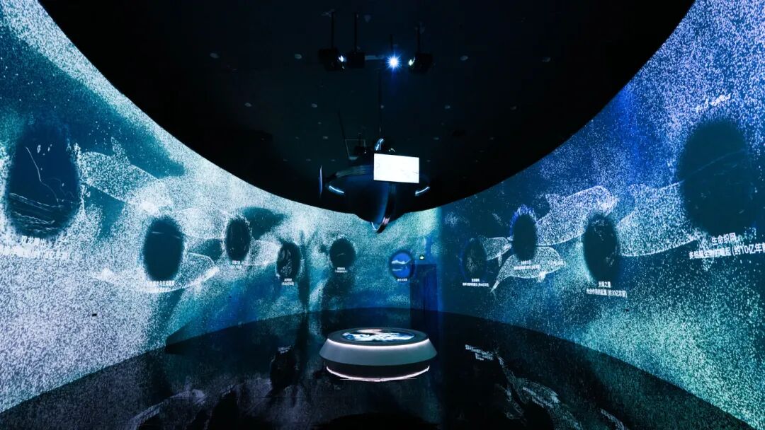 《重返海洋:穿越46亿年的时空旅行》——海洋演化史科学艺术展览由国家海洋博物馆、光盒魔鱼(青岛)数字科技有限公司主办、中国海洋大学海洋科普与文旅产业联合研究中心承办、中国海洋大学水产学院及青岛海洋探索影像研究院提供科学支持,首次站在太空的视角凝视海洋,以46亿年的时间线为叙事轴,通过10个数字艺术展品,讲述地球——这颗蓝色“不凡之石”的生命演化轨迹。