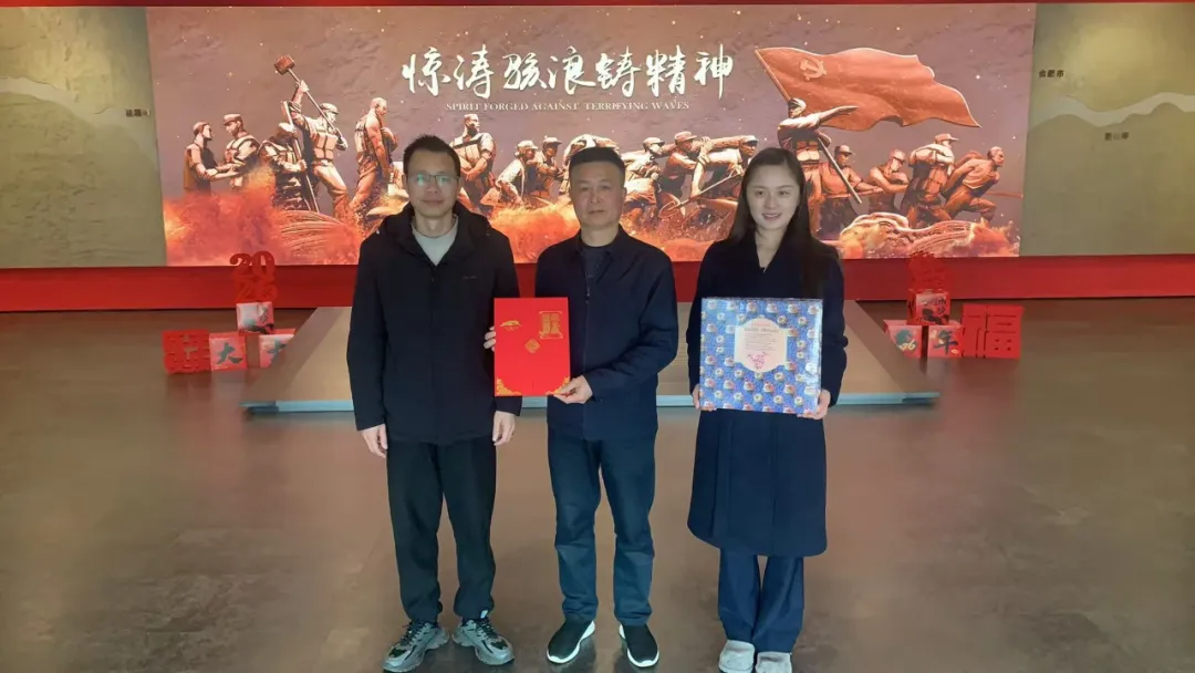 漆爱勇与展馆工作人员合影