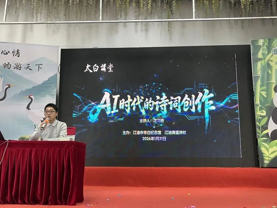 随着人工智能的快速发展,诗歌创作领域正迎来新的变革。在此背景下,李白纪念馆携手江油青莲诗社,于1月31日上午成功举办第十期“太白讲堂”,邀请中华诗词学会会员、江油青莲诗社副社长沈习进,以“AI时代的诗词创作”为主题,与绵阳诗书画印各界同仁展开深入交流。