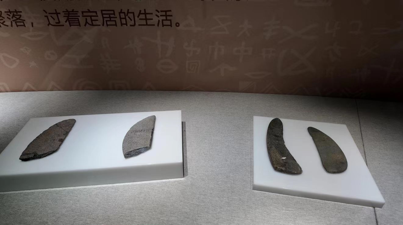 距今300万年到距今4000年,石器时代是人类历史的“超长待机”阶段。这一篇章展出43件旧石器、新石器时代的石器文物,多把出土于怀柔水库西山的精美石镰首次全套展出,还有史前怀柔最大“石器加工厂”——宝山转年遗址央视采访照片,也是首次公开亮相!