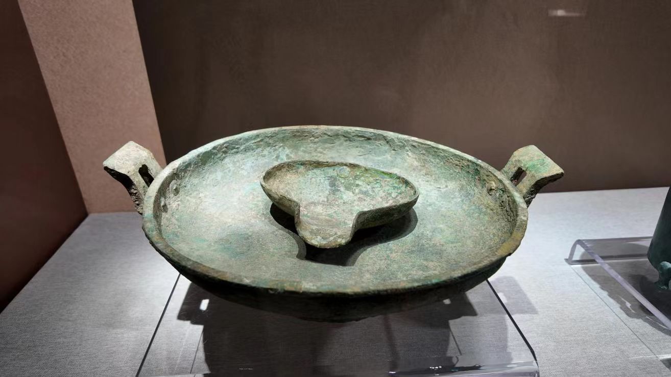 怀柔一中科技楼出土的战国时期铜盘(下)-铜匜(上)组合
