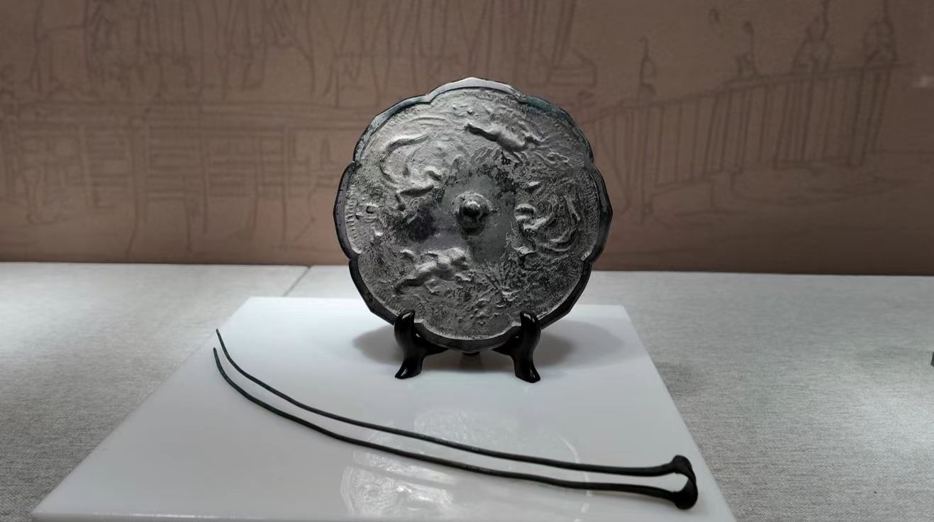 杨宋镇凤翔瑞园小区出土的鸾兽铜镜(上)、唐代头钗(下)