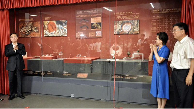 5月20日上午,海昏侯国遗址出土中药辅料炮制品展版揭展仪式在南昌汉代海昏侯国遗址博物馆“金色海昏”展厅举行。