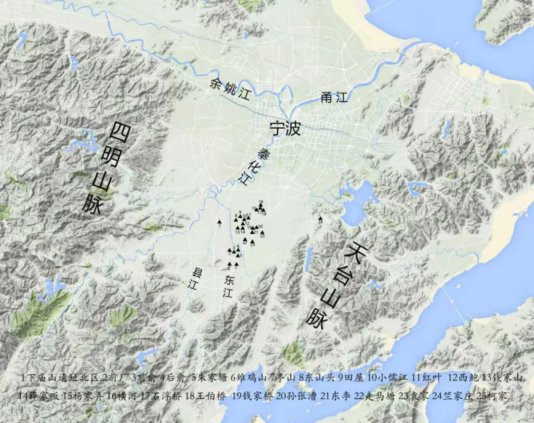 2022年,宁波市文化遗产管理研究院启动了奉化江流域先秦遗址考古调查与勘探项目。2025年作为项目收官之年,成果尤为丰硕:在奉化江支流东江、县江两岸又新发现了25处先秦遗址,将奉化江流域先秦遗址总数量提升至71处,力证除了姚江谷地以外,奉化江流域也是宁波地区先秦遗址的核心分布区。