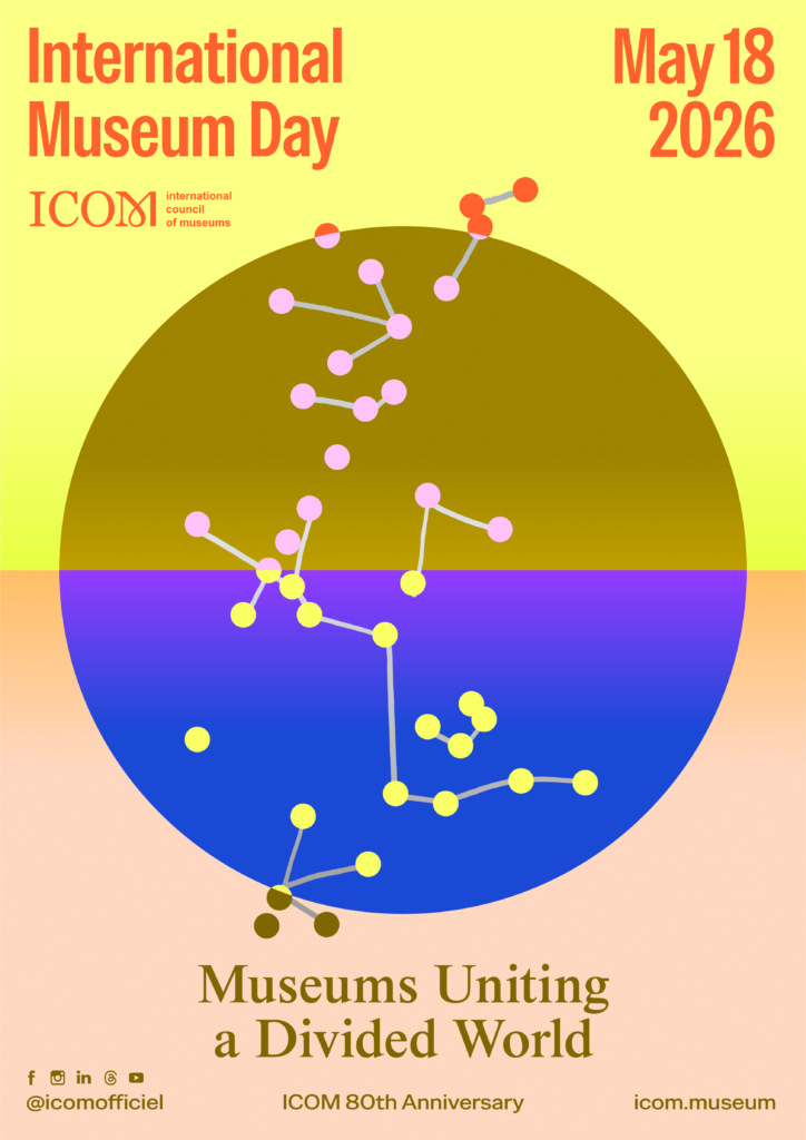 2026年恰逢国际博物馆协会成立80周年,本年度国际博物馆日以“博物馆:联结世界的桥梁”为年度主题。本次发布的主题海报紧扣核心主旨,具象化呈现博物馆跨越文化、社会与地缘政治隔阂的纽带作用,生动诠释了博物馆推动对话互鉴、包容共生的核心理念。